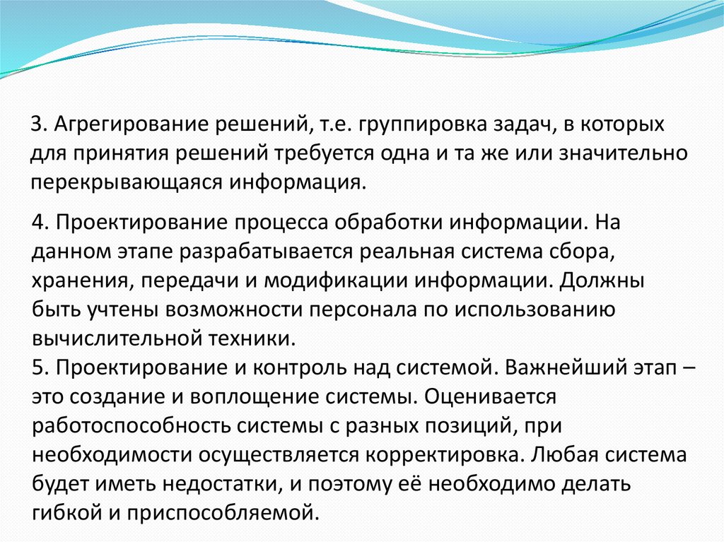 3. Агрегирование решений, т.е. группировка задач, в которыхдля принятия решений требуется одна и та же или значительно