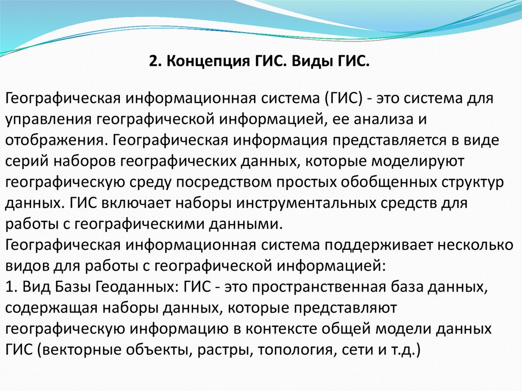2. Концепция ГИС. Виды ГИС.