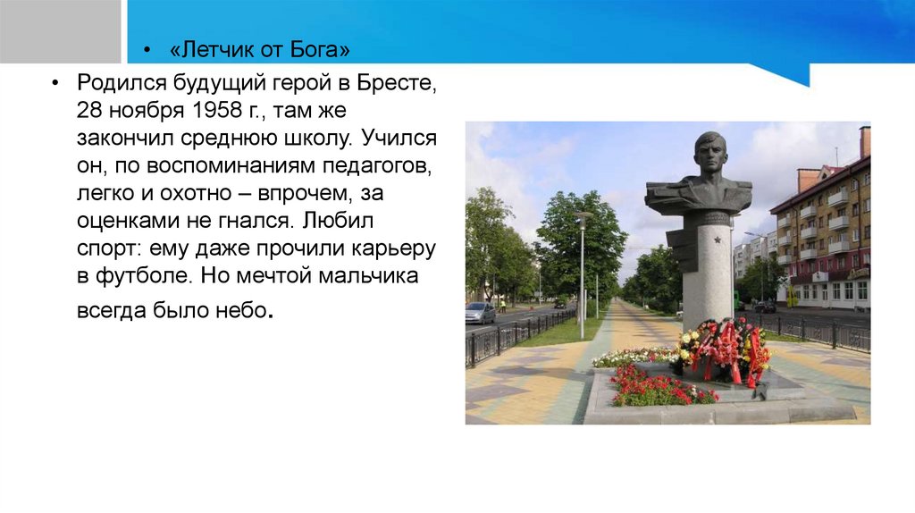• «Летчик от Бога»• Родился будущий герой в Бресте,