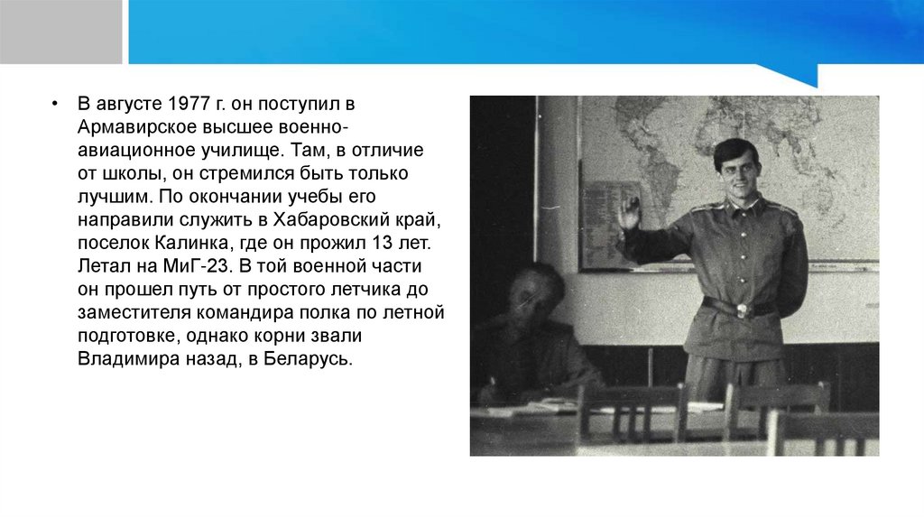 • В августе 1977 г. он поступил вАрмавирское высшее военноавиационное училище. Там, в отличие