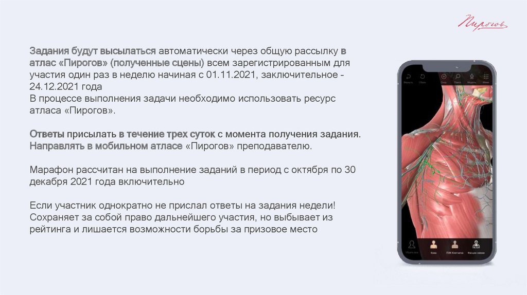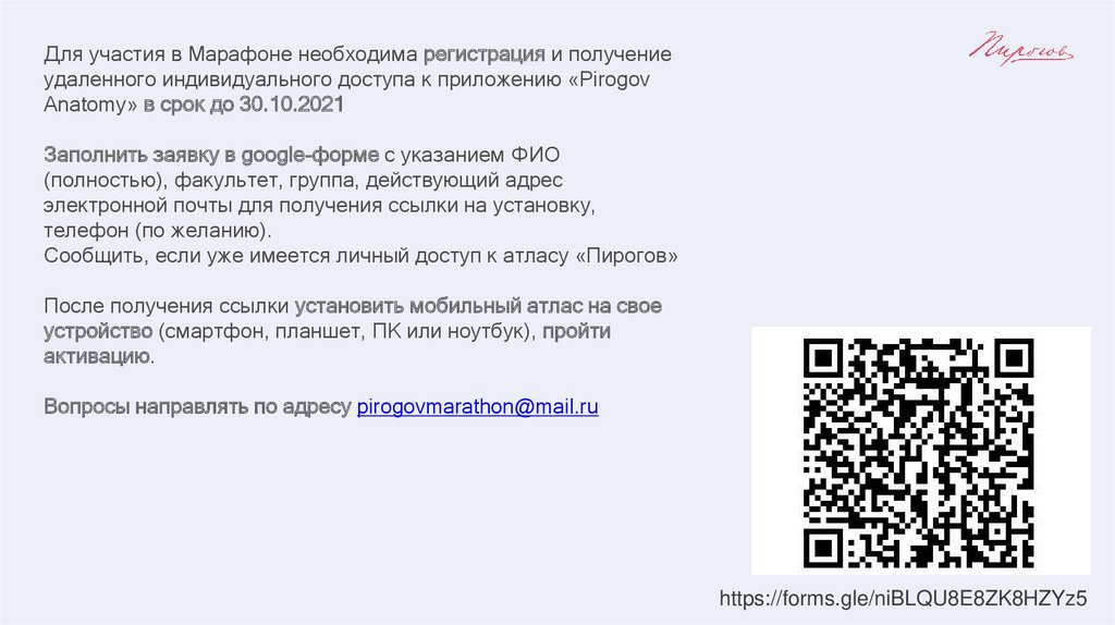 Для участия в Марафоне необходима регистрация и получениеудаленного индивидуального доступа к приложению «Pirogov