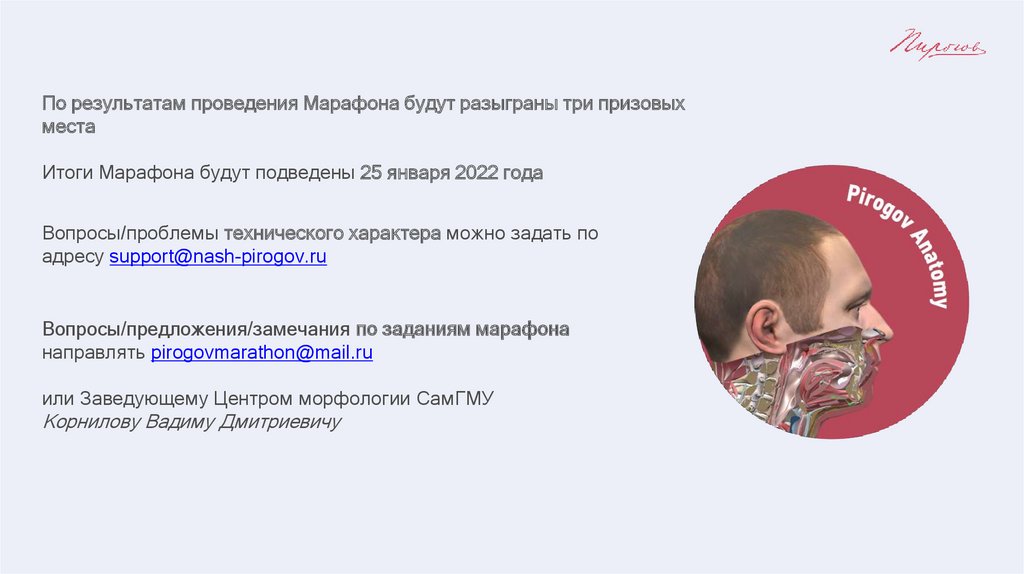Вопросы направлять по адресу pirogovmarathon@mail.ru