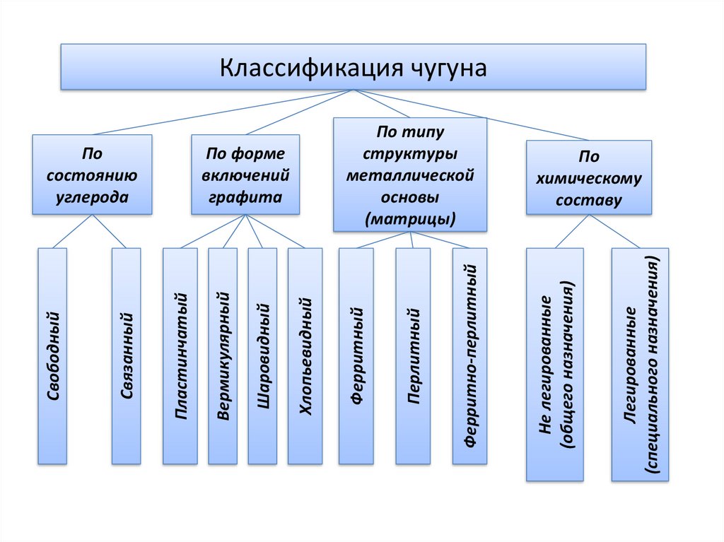 Классификация чугуна с различной формой графита (ГОСТ 3443-77)