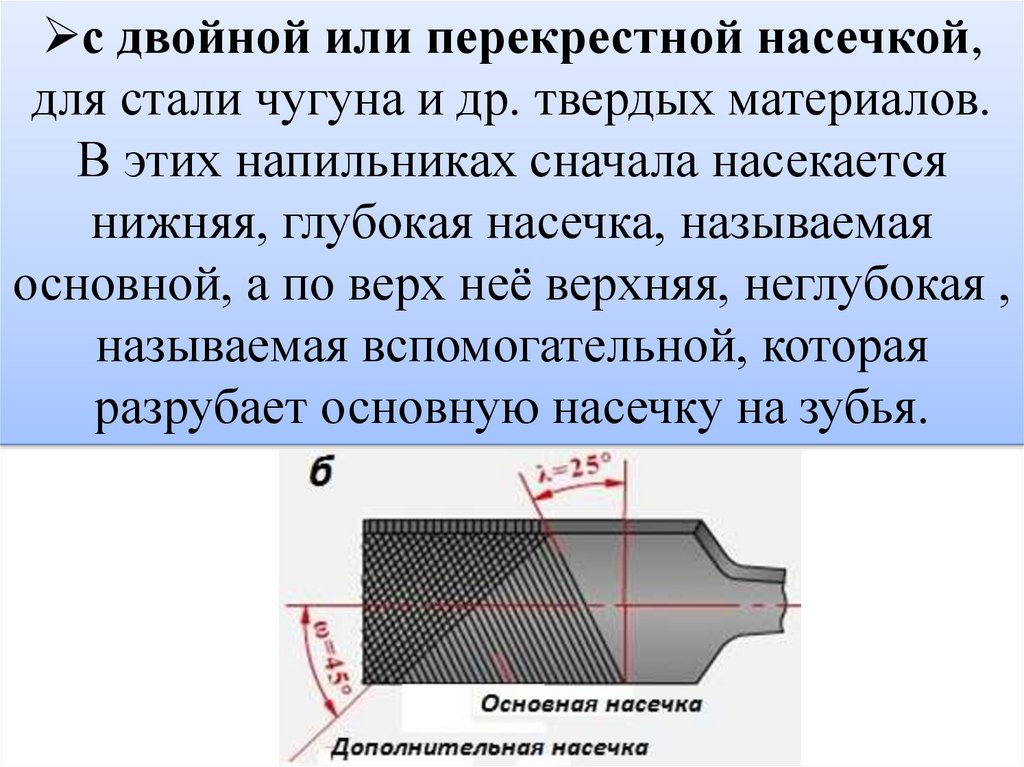 с двойной или перекрестной насечкой,для стали чугуна и др. твердых материалов.