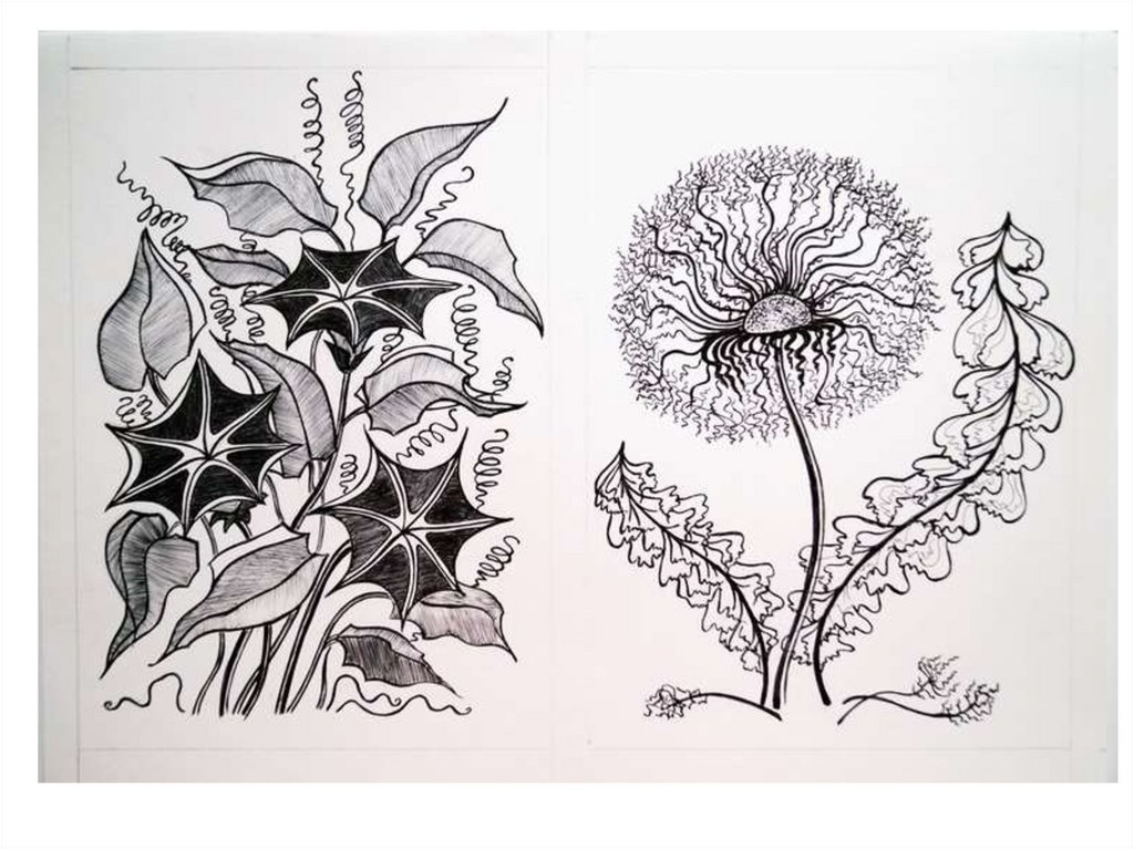 приемы – пятно, линию, штрих.