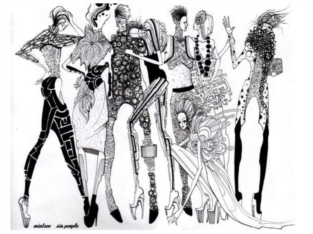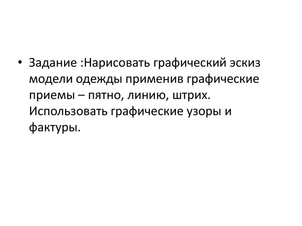 • Задание :Нарисовать графический эскизмодели одежды применив графические