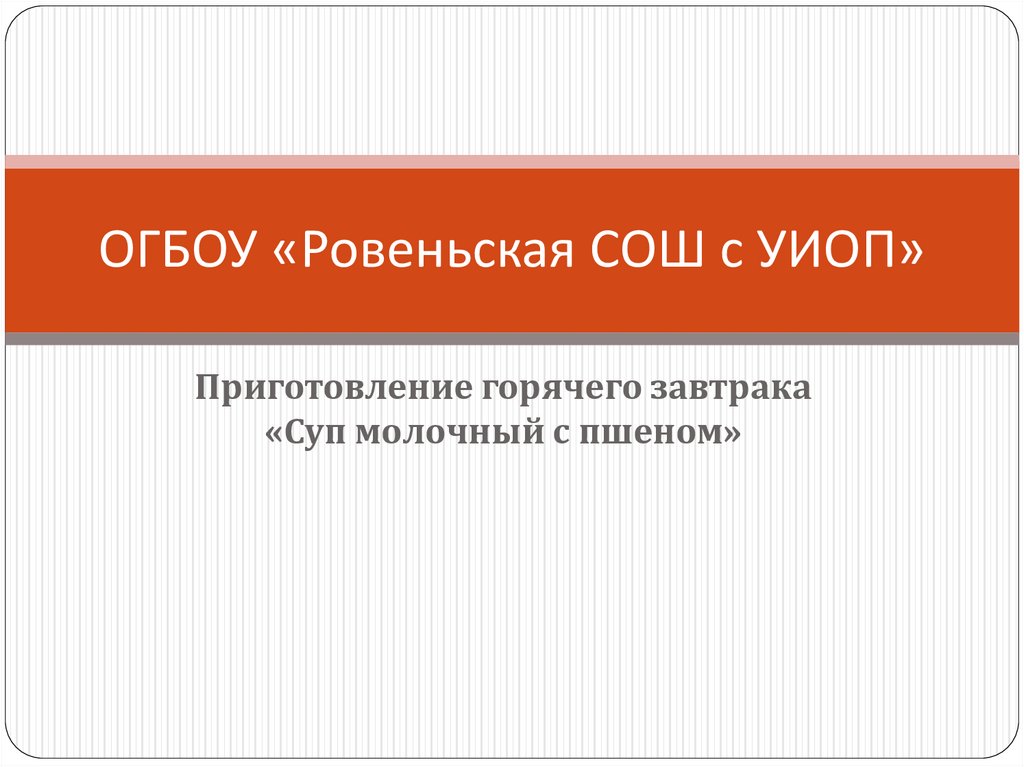 ОГБОУ «Ровеньская СОШ с УИОП»Приготовление горячего завтрака