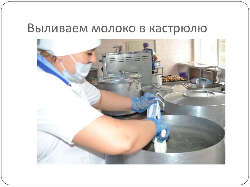 Выливаем молоко в кастрюлю5.