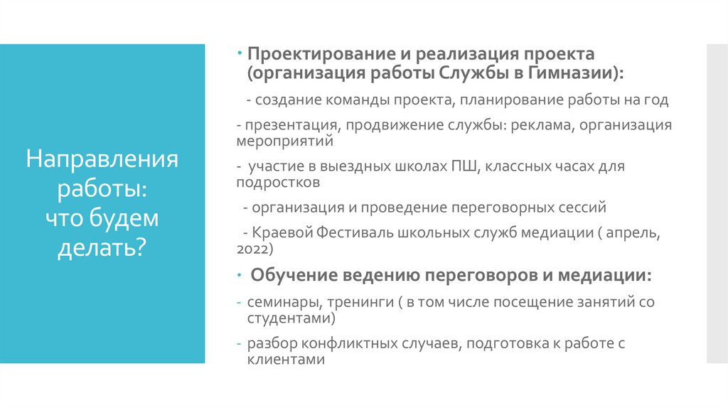 Проектирование и реализация проекта(организация работы Службы в Гимназии):