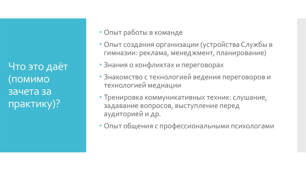 Опыт работы в командеОпыт создания организации (устройства Службы в
