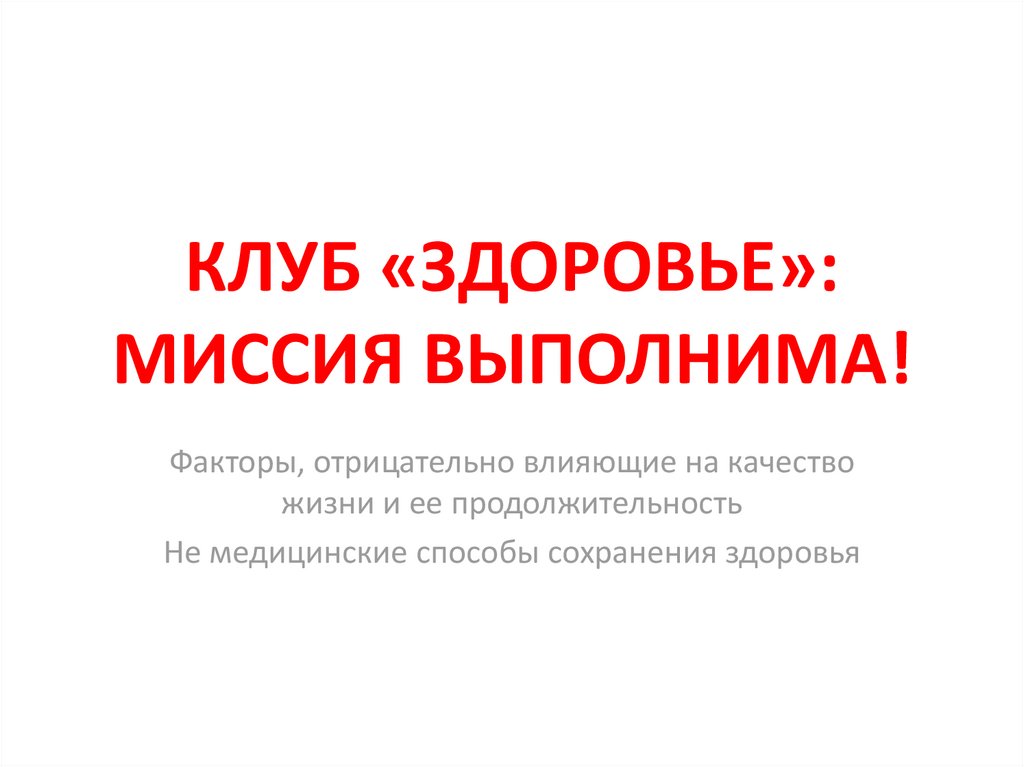 КЛУБ «ЗДОРОВЬЕ»:МИССИЯ ВЫПОЛНИМА!