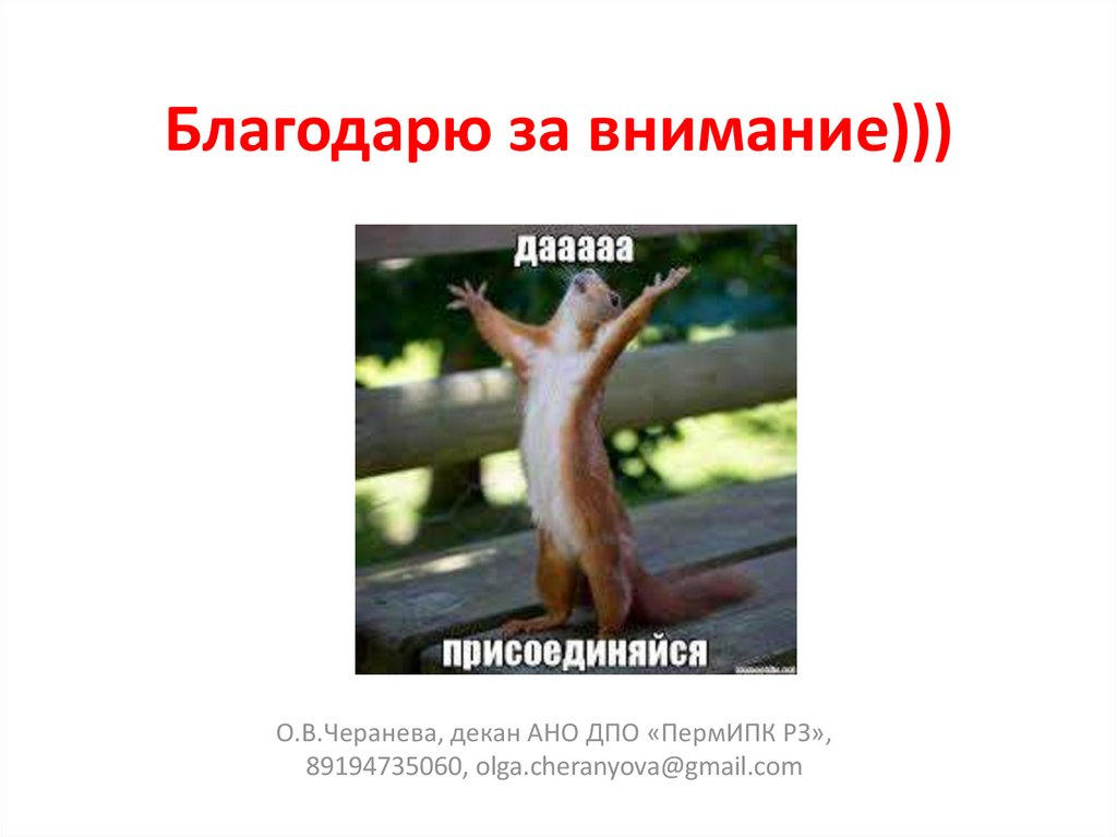 Благодарю за внимание)))О.В.Черанева, декан АНО ДПО «ПермИПК РЗ»,