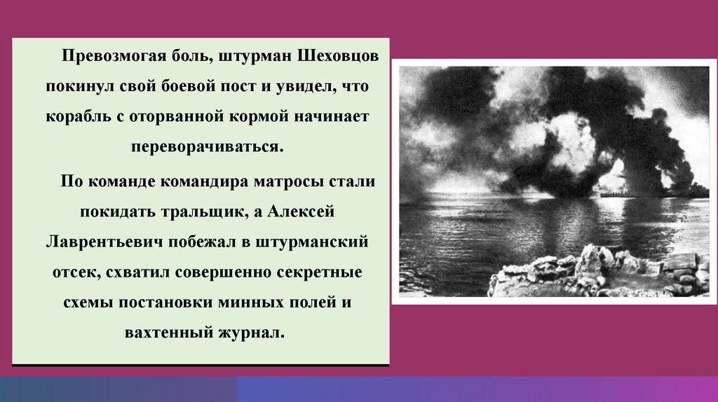 покидать тральщик, а Алексей