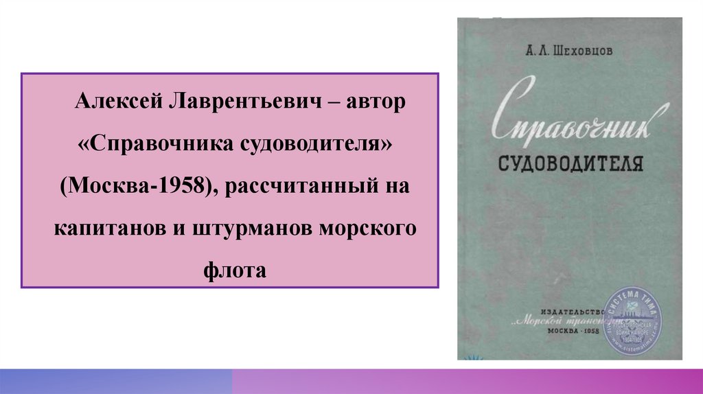 Алексей Лаврентьевич – автор«Справочника судоводителя»