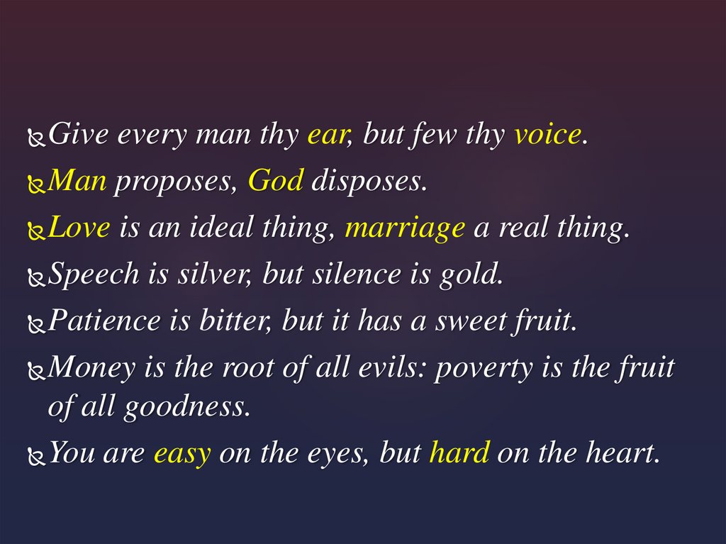 Give every man thy ear, but few thy voice.Man proposes, God disposes.