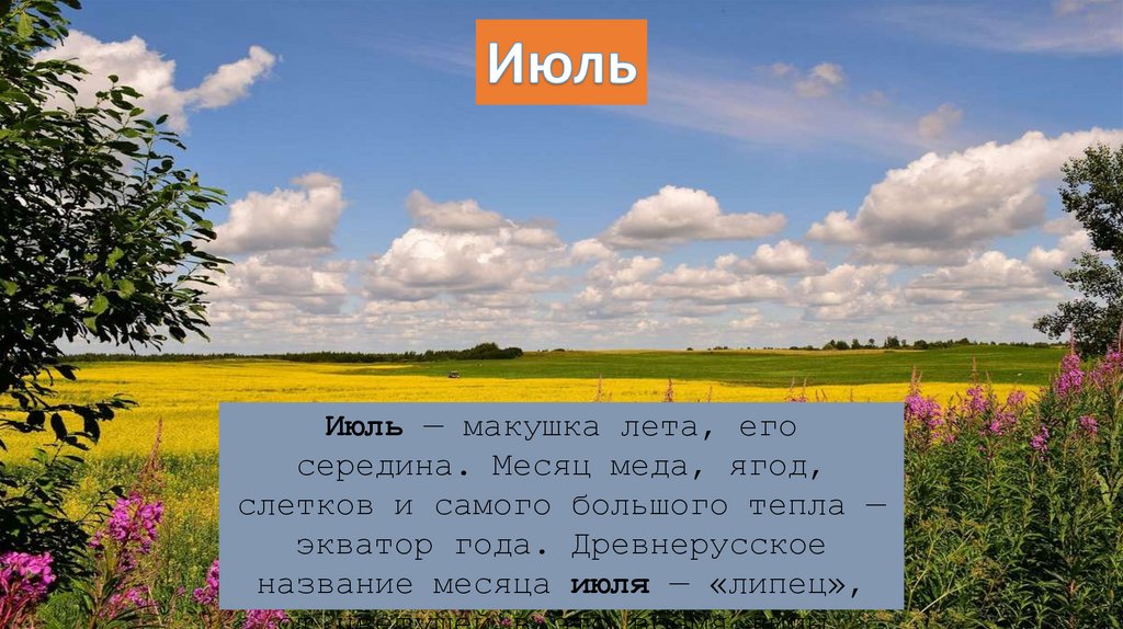 Июль — макушка лета, егосередина. Месяц меда, ягод,