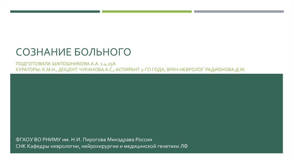 КУРАТОРЫ: К.М.Н., ДОЦЕНТ ЧУКАНОВА А.С.; АСПИРАНТ 2-ГО ГОДА, ВРАЧ-НЕВРОЛОГ РАДИОНОВА Д.М.