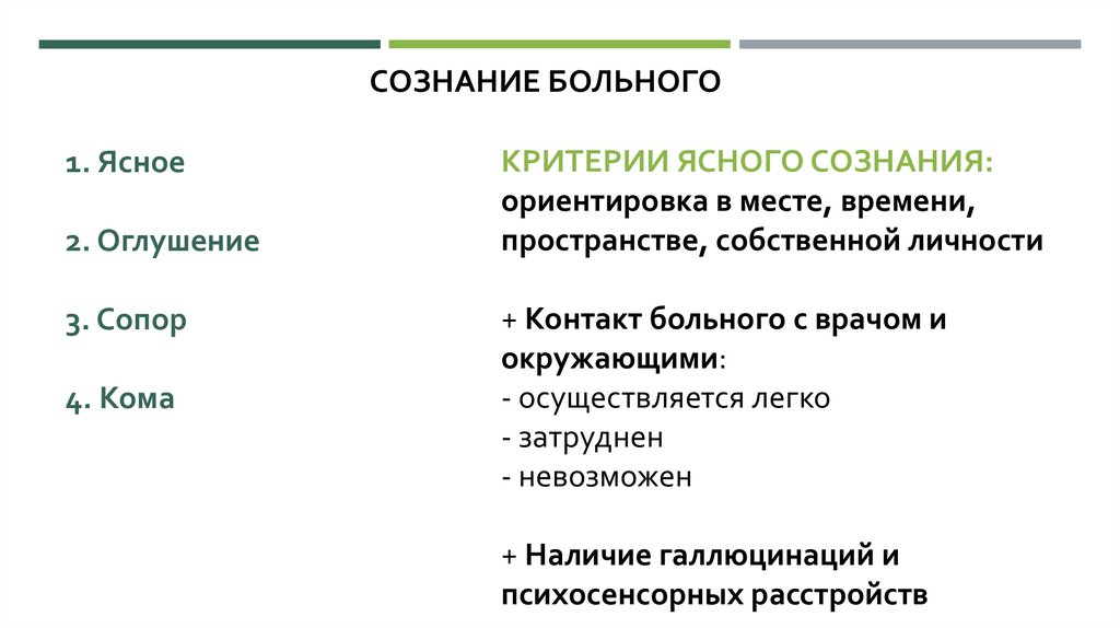 СОЗНАНИЕ БОЛЬНОГО1. Ясное