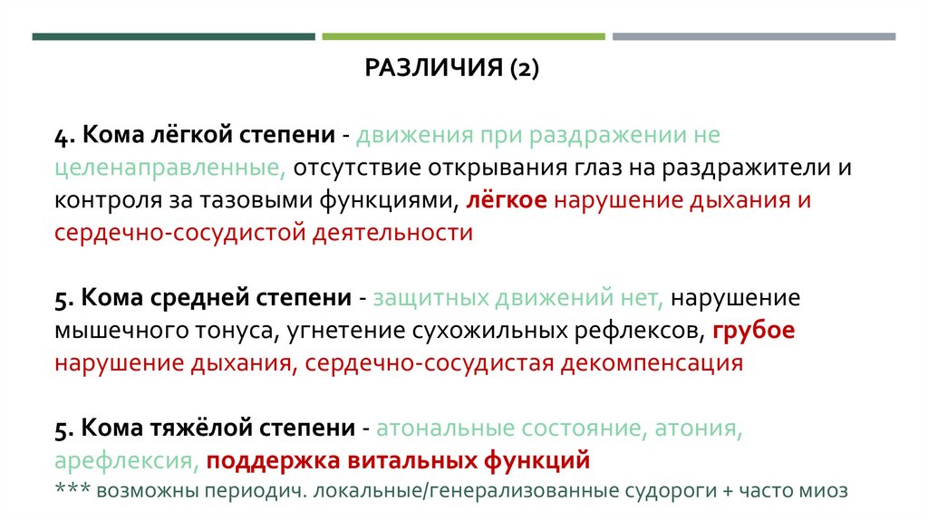 РАЗЛИЧИЯ (2)4. Кома лёгкой степени - движения при раздражении не