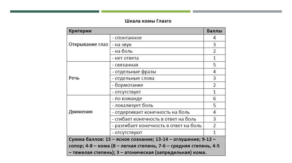 КРИТЕРИИ ЯСНОГО СОЗНАНИЯ:
