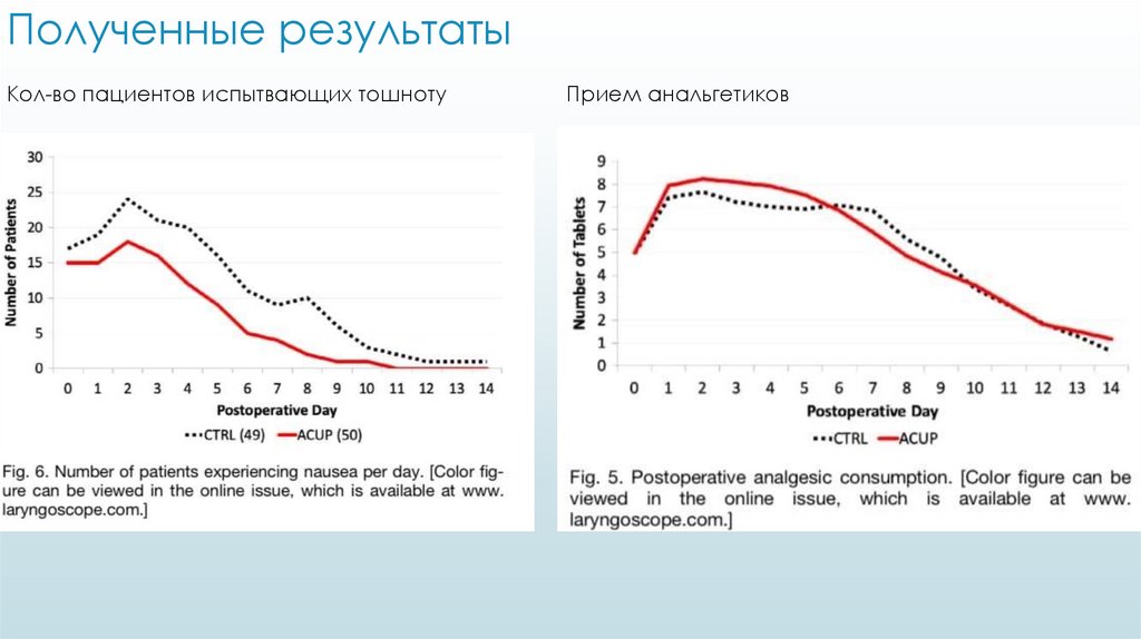 Полученные результатыКол-во пациентов испытвающих тошноту
