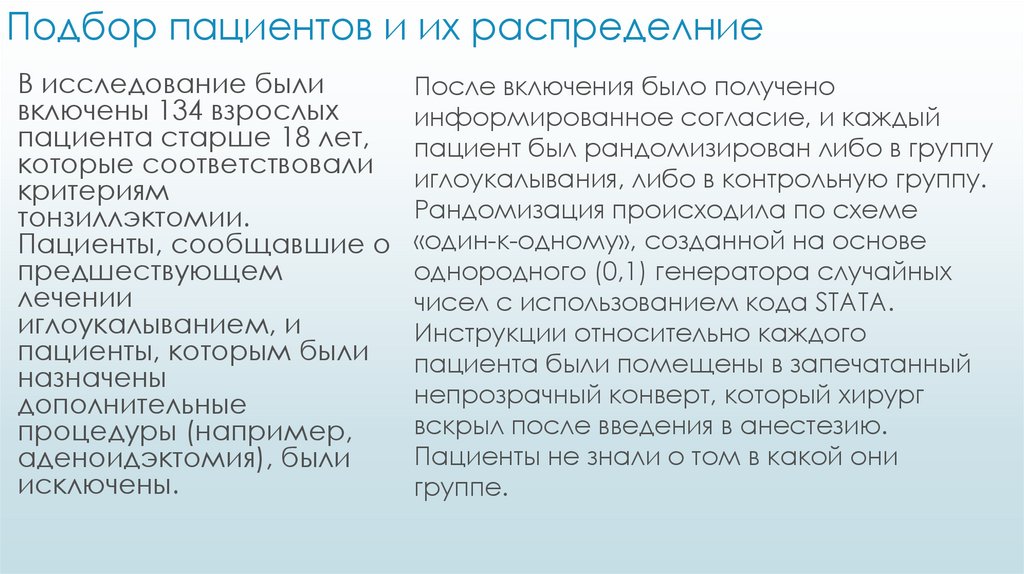 пациент был рандомизирован либо в группу