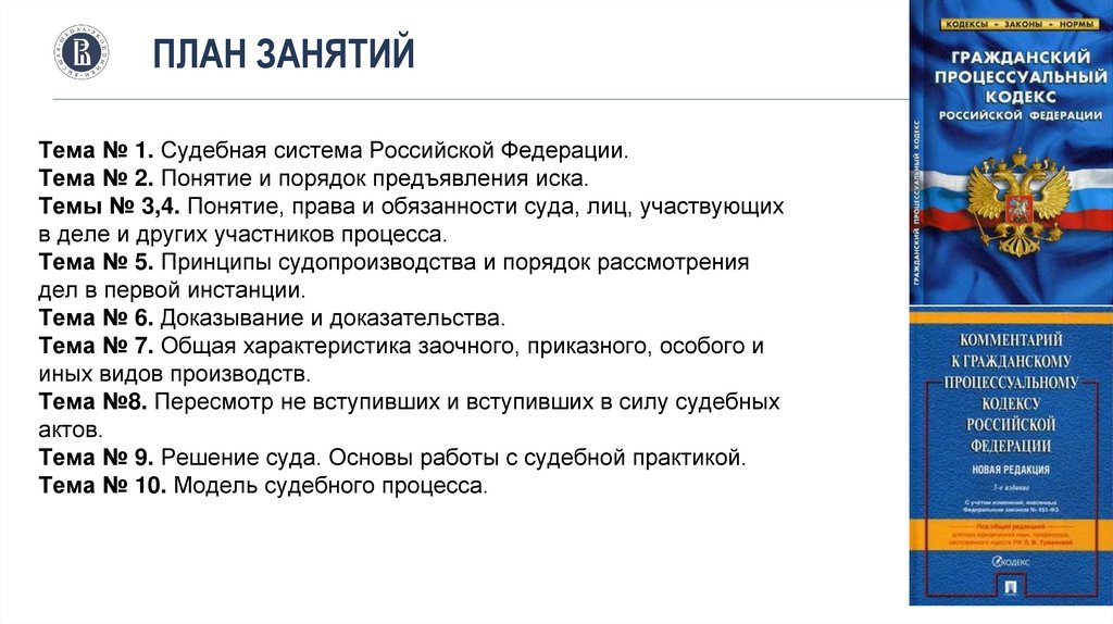 ПЛАН ЗАНЯТИЙТема № 1. Судебная система Российской Федерации.