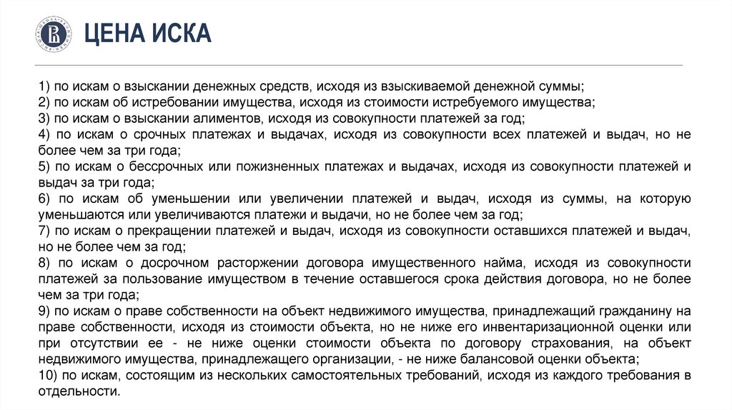 10) по искам, состоящим из нескольких самостоятельных требований, исходя из каждого требования в