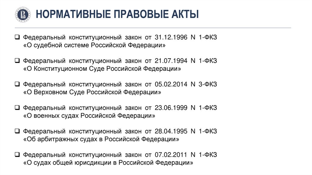 НОРМАТИВНЫЕ ПРАВОВЫЕ АКТЫФедеральный конституционный закон от 31.12.1996 N 1-ФКЗ