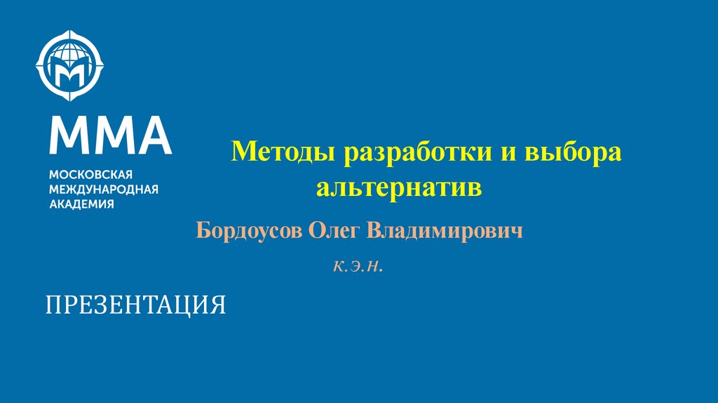 Методы разработки и выбора альтернатив