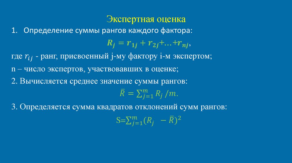 Экспертная оценка1. Определение суммы рангов каждого фактора: