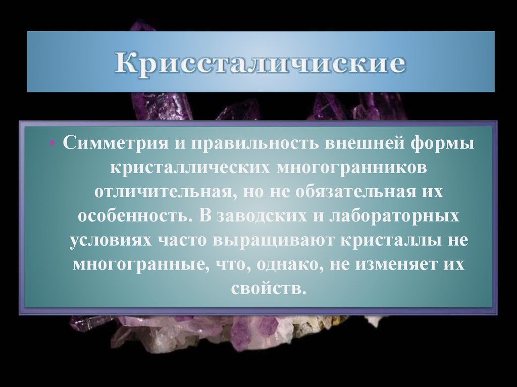 • Симметрия и правильность внешней формыкристаллических многогранников