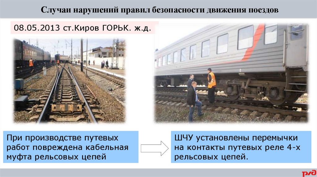 Случаи нарушений правил безопасности движения поездов08.05.2013 ст.Киров ГОРЬК. ж.д.