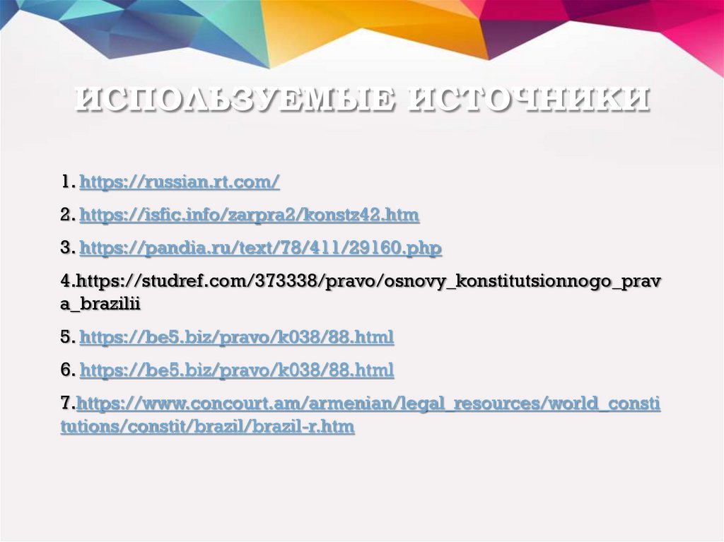 ИСПОЛЬЗУЕМЫЕ ИСТОЧНИКИ1. https://russian.rt.com/