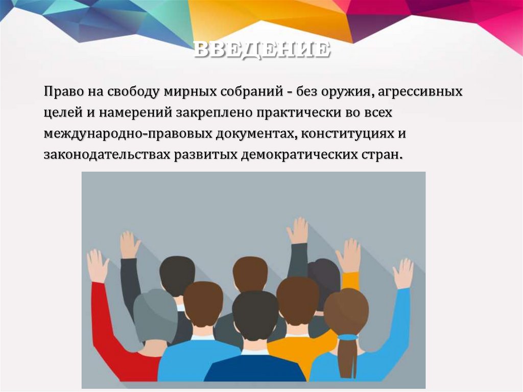 ВВЕДЕНИЕПраво на свободу мирных собраний - без оружия, агрессивных
