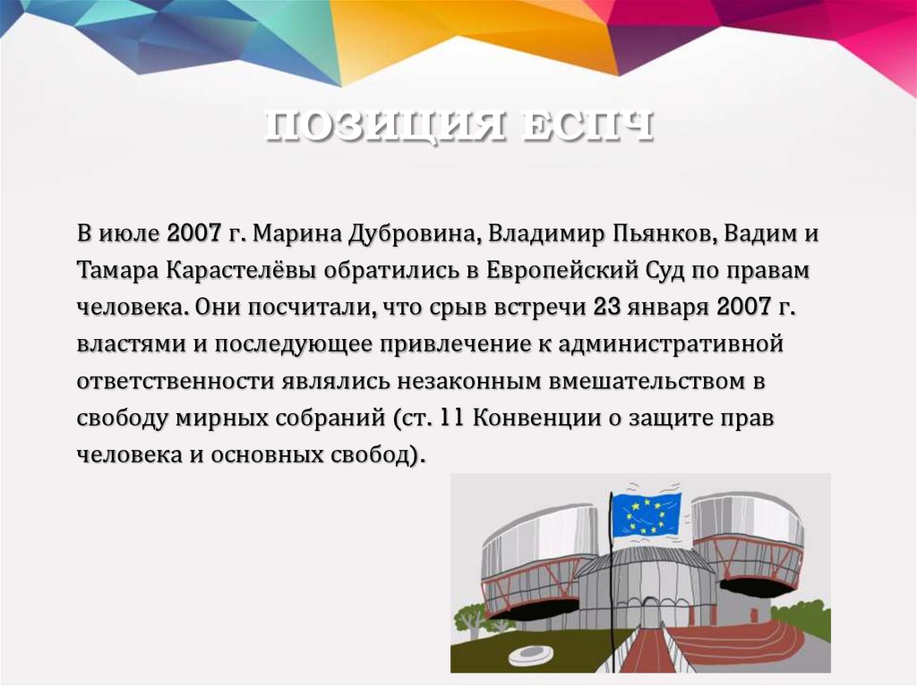 ПОЗИЦИЯ ЕСПЧЕСПЧ напомнил, что право на свободу собраний является