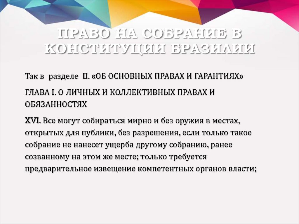 ПРАВО НА СОБРАНИЕ ВКОНСТИТУЦИИ БРАЗИЛИИ