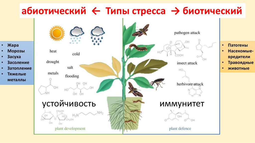 абиотический ← Типы стресса → биотический• Патогены
