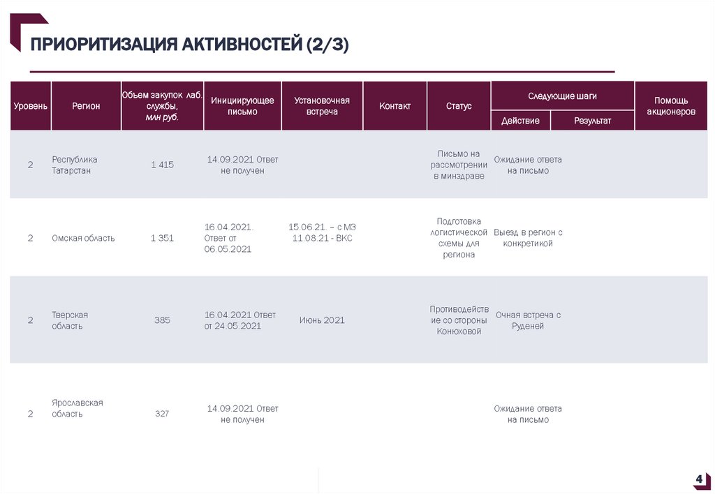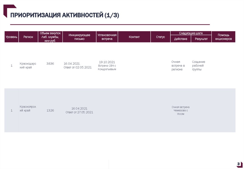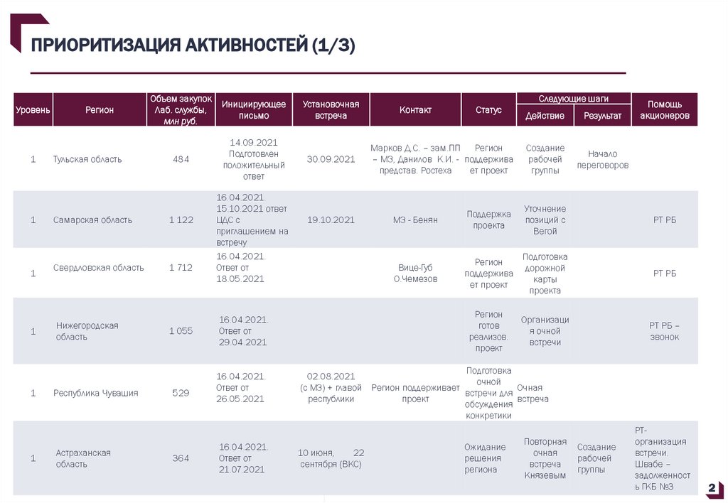 ПРИОРИТИЗАЦИЯ АКТИВНОСТЕЙ (1/3)Уровень