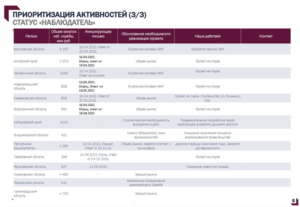 ПРИОРИТИЗАЦИЯ АКТИВНОСТЕЙ (3/3)СТАТУС «НАБЛЮДАТЕЛЬ»