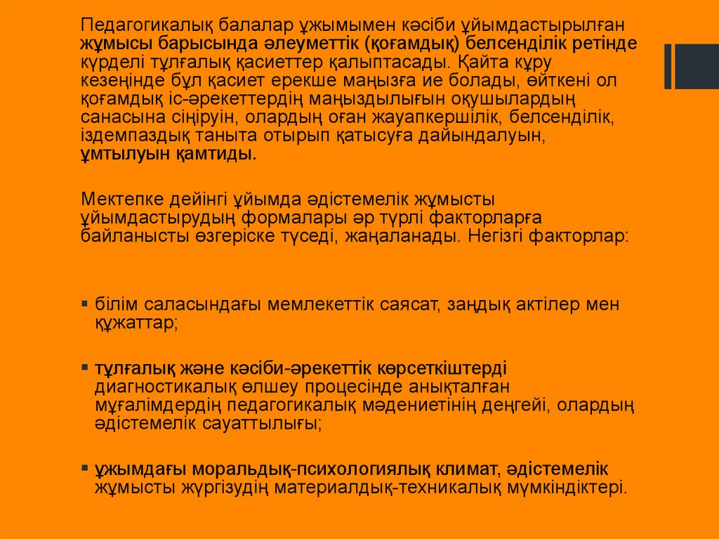 Педагогикалық балалар ұжымымен кәсіби ұйымдастырылғанжұмысы барысында әлеуметтік (қоғамдық) белсенділік ретінде