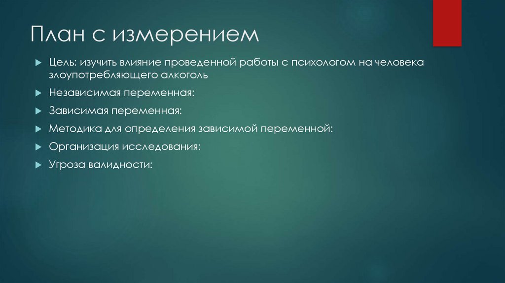 План с измерениемЦель: изучить влияние проведенной работы с психологом на человека