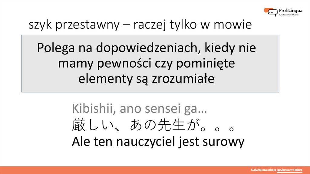 szyk przestawny – raczej tylko w mowiePolega na dopowiedzeniach, kiedy nie