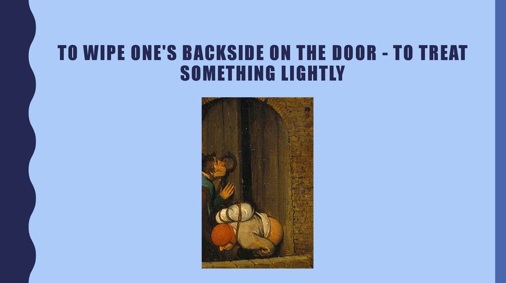 TO WIPE ONE'S BACKSIDE ON THE DOOR - TO TREATSOMETHING LIGHTLY