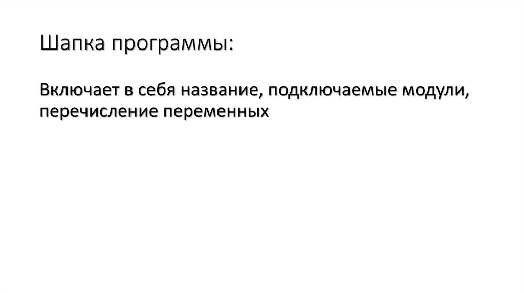 Структура программыШапка программы