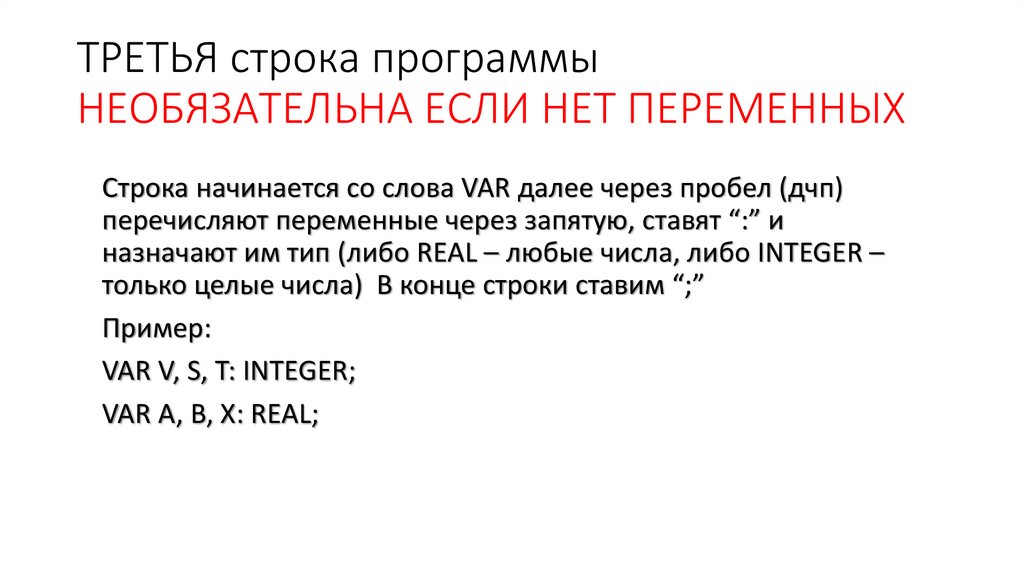 ТРЕТЬЯ строка программыНЕОБЯЗАТЕЛЬНА ЕСЛИ НЕТ ПЕРЕМЕННЫХ