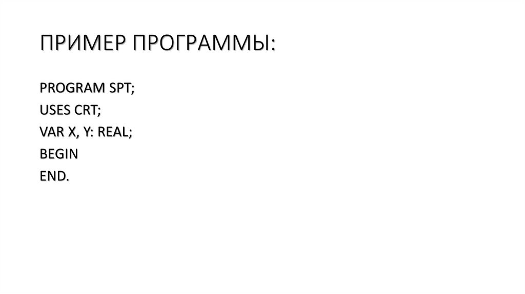 ПРИМЕР ПРОГРАММЫ:PROGRAM SPT;