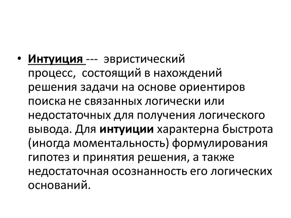 • Интуиция --- эвристическийпроцесс, состоящий в нахождений