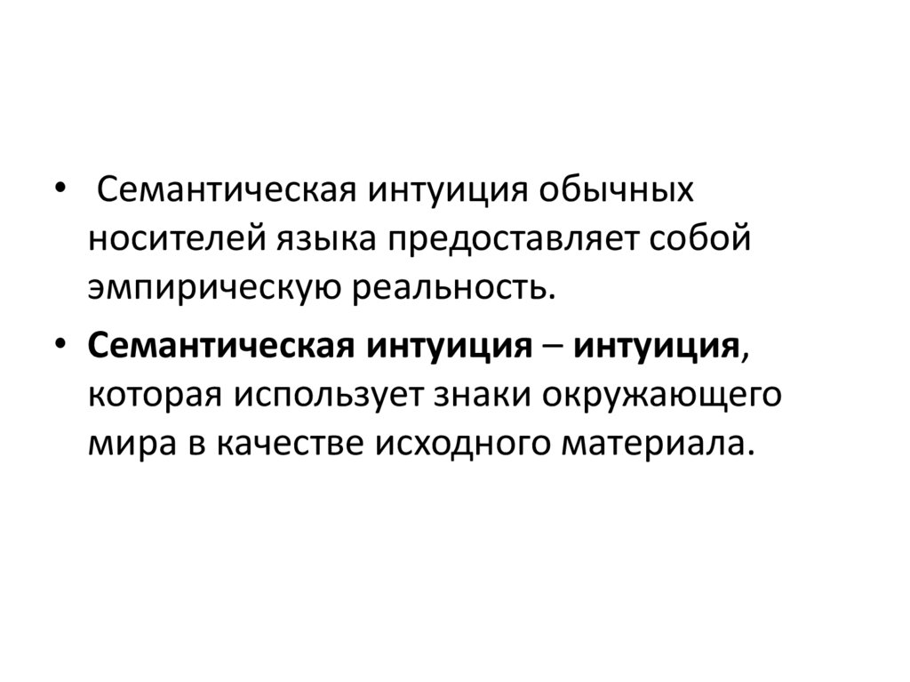 • Семантическая интуиция обычныхносителей языка предоставляет собой