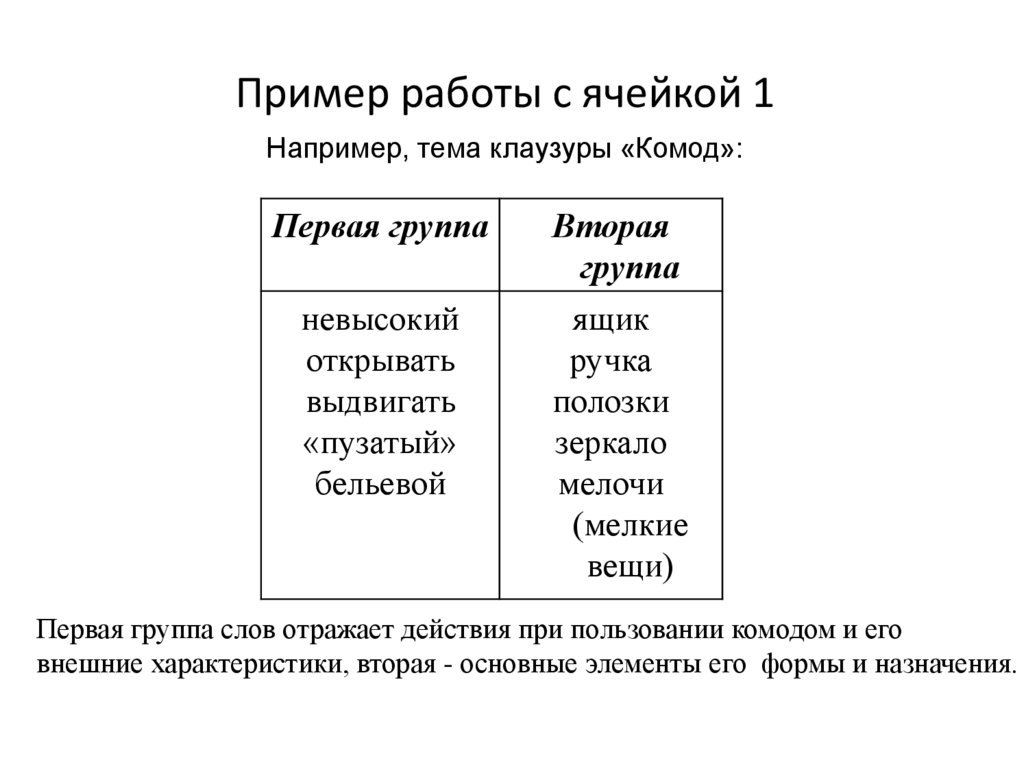 Пример работы с ячейкой 1Например, тема клаузуры «Комод»: